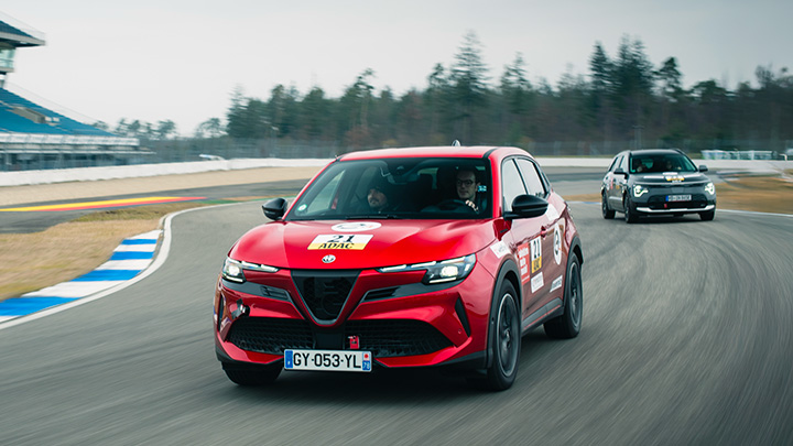 Parties de Paris, deux Alfa Romeo Junior Elettrica ont parcouru plus de 2 500 kilomètres en un week-end, incluant un aller-retour en Allemagne et une participation à une course de 24 heures. Dans des conditions climatiques extrêmes, ces modèles 100 % électriques ont su allier efficience et performance sur l’un des circuits les plus exigeants d’Europe.