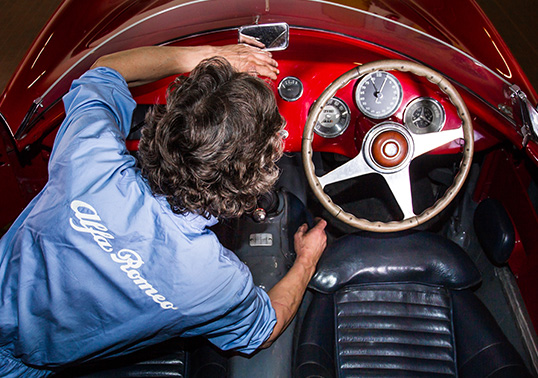 Le lien indéfectible avec Milan est la pierre angulaire de l'image d'Alfa Romeo. L'idée du logo vient d'un jeune illustrateur nommé Romano Cattaneo, grand ami de Giuseppe Merosi. Alors qu'il attendait le tram numéro 14 sur la Piazza Castello, son attention fut attirée par le Biscione Visconteo sur la tour principale du Castello Sforzesco. Ce fut le coup de foudre, mais il manquait encore quelque chose. Cattaneo et Merosi ont alors travaillé sur différentes versions : la plus convaincante montrait le dragon Biscione d'un côté, et l'emblème de la ville de Milan, une croix rouge sur fond blanc, à gauche.