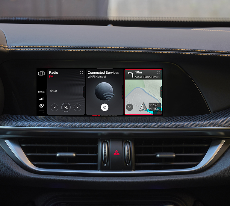 La série spéciale Quadrifoglio 100° Anniversario présente des solutions technologiques avancées qui répondent aux attentes les plus élevées en matière de performances exceptionnelles. Un écosystème de services numériques intégrés conçus pour offrir une expérience de conduite inégalée.