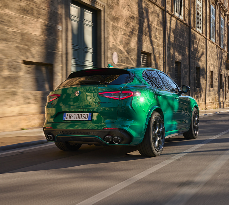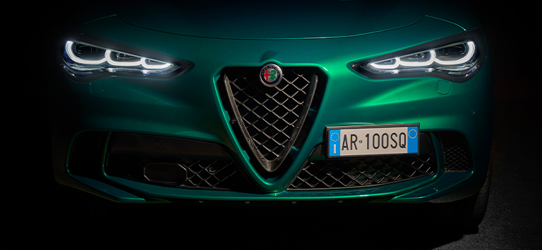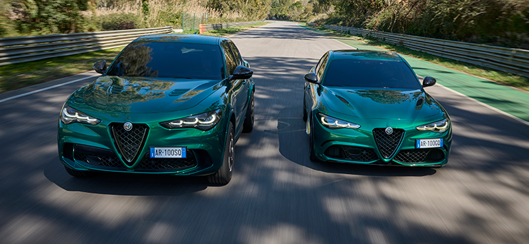 100 modèles de Stelvio Quadrifoglio. 100 modèles de Giulia Quadrifoglio. La série spéciale Quadrifoglio 100° Anniversario rend hommage à l'histoire légendaire des versions les plus sportives de Giulia et Stelvio en créant un mélange unique de performance et de design italien.