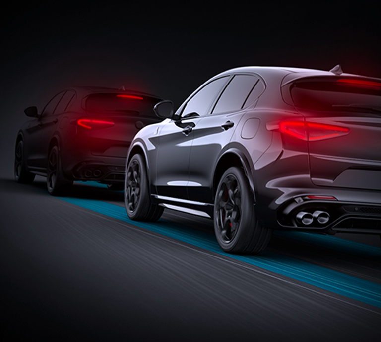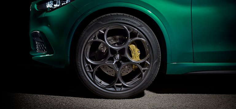 Consommation de carburant Gamme Stelvio Quadrifoglio (l/100 km) : 11,8 ; Émission de CO2 (g/km) : 267. Valeurs déterminées sur la base du cycle pondéré WLTP, mis à jour au 4 avril 2023 lors des activités d'essais de pré-approbation et pouvant varier avant l'homologation finale. Les valeurs indiquées sont à titre comparatif.