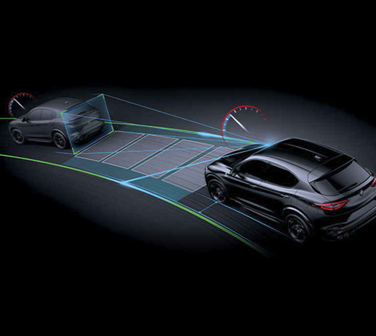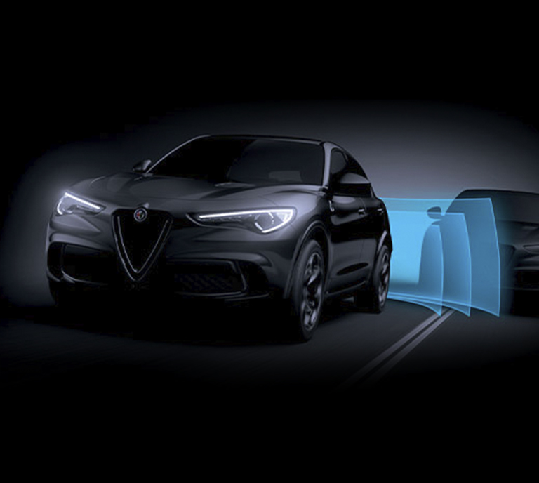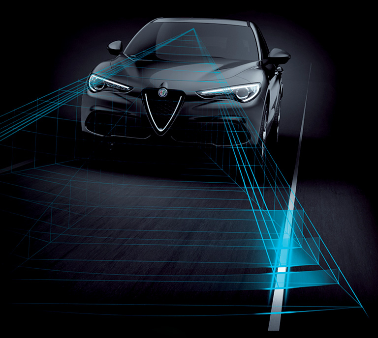 Intégrant un large éventail de solutions de pointe, la conduite assistée de niveau 2 aide le conducteur à mieux maîtriser l'Alfa Romeo Stelvio Quadrifoglio.